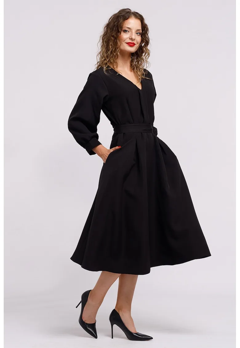 Rochie midi cu croiala in A si buzunare – Reduceri Exclusive