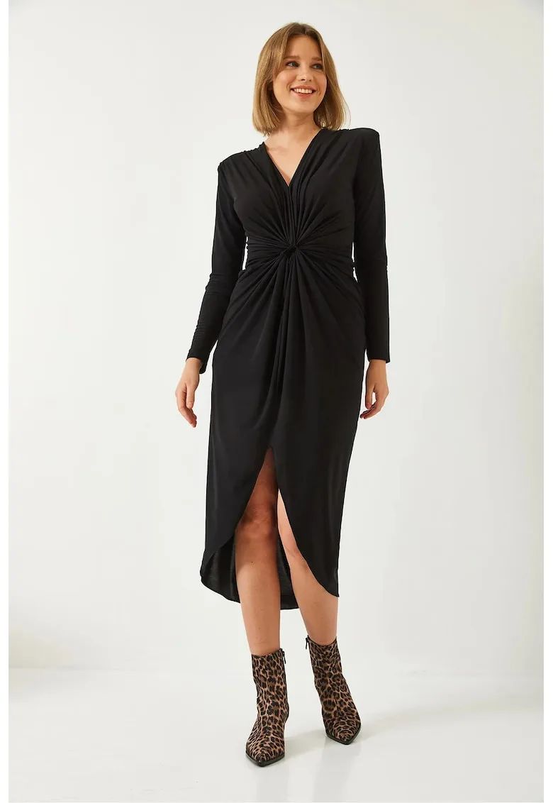 Descoperă rochia perfectă pentru evenimente speciale! Cumpără Rochie midi cu decolteu in V – volane – negru – bumbac – acum de la FashionDays și profită de oferta limitată!