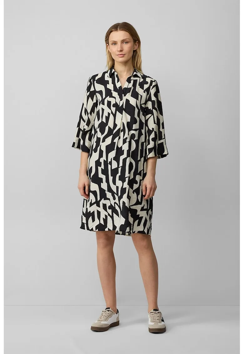 Caracteristici Culoare: gri melange Stil: casual Material: viscoza – acril Imprimeu: uni Croiala: evazat Lungime: midi Decolteu: in v Lungime maneca: maneca trei sferturi Compozitie Exterior: 83% viscoza – 17% acrilic.