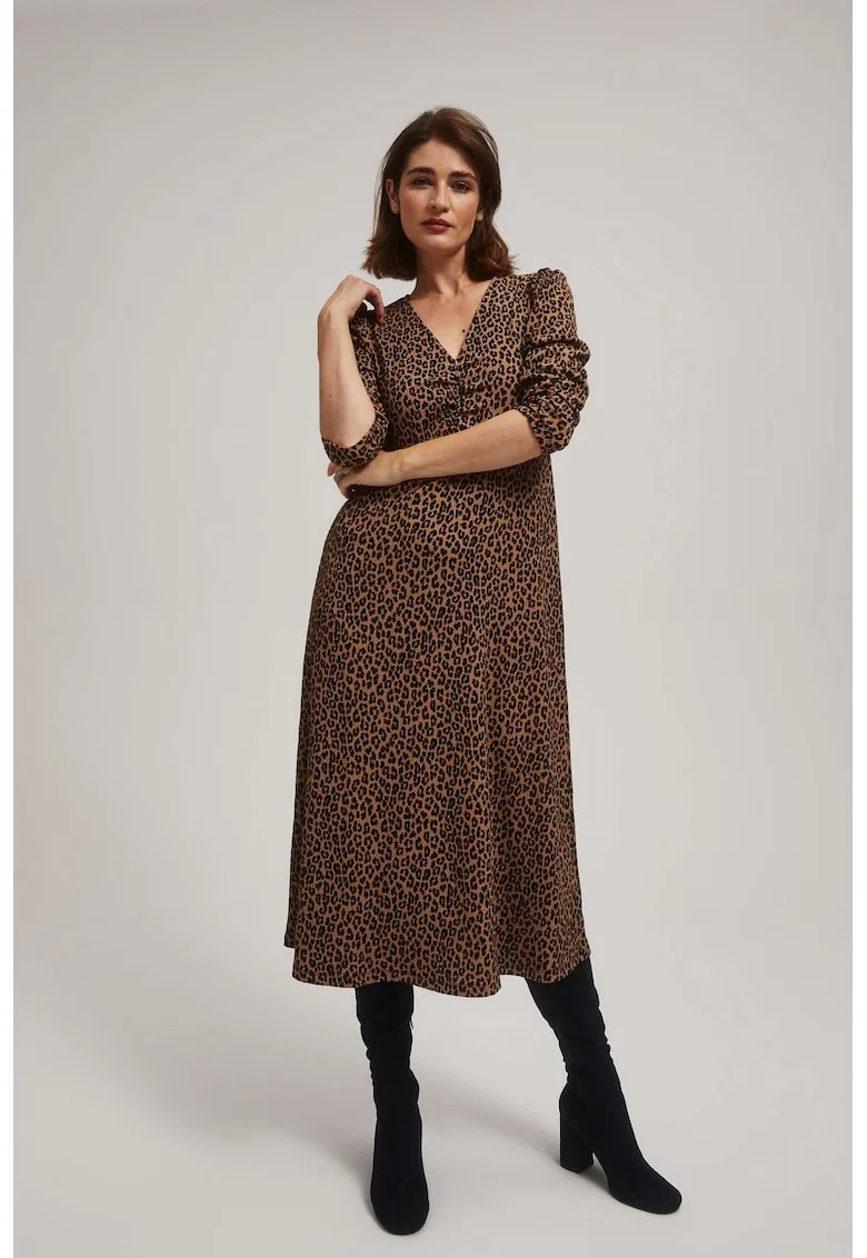 Rochie midi cu imprimeu leopard maro – Reduceri Exclusive