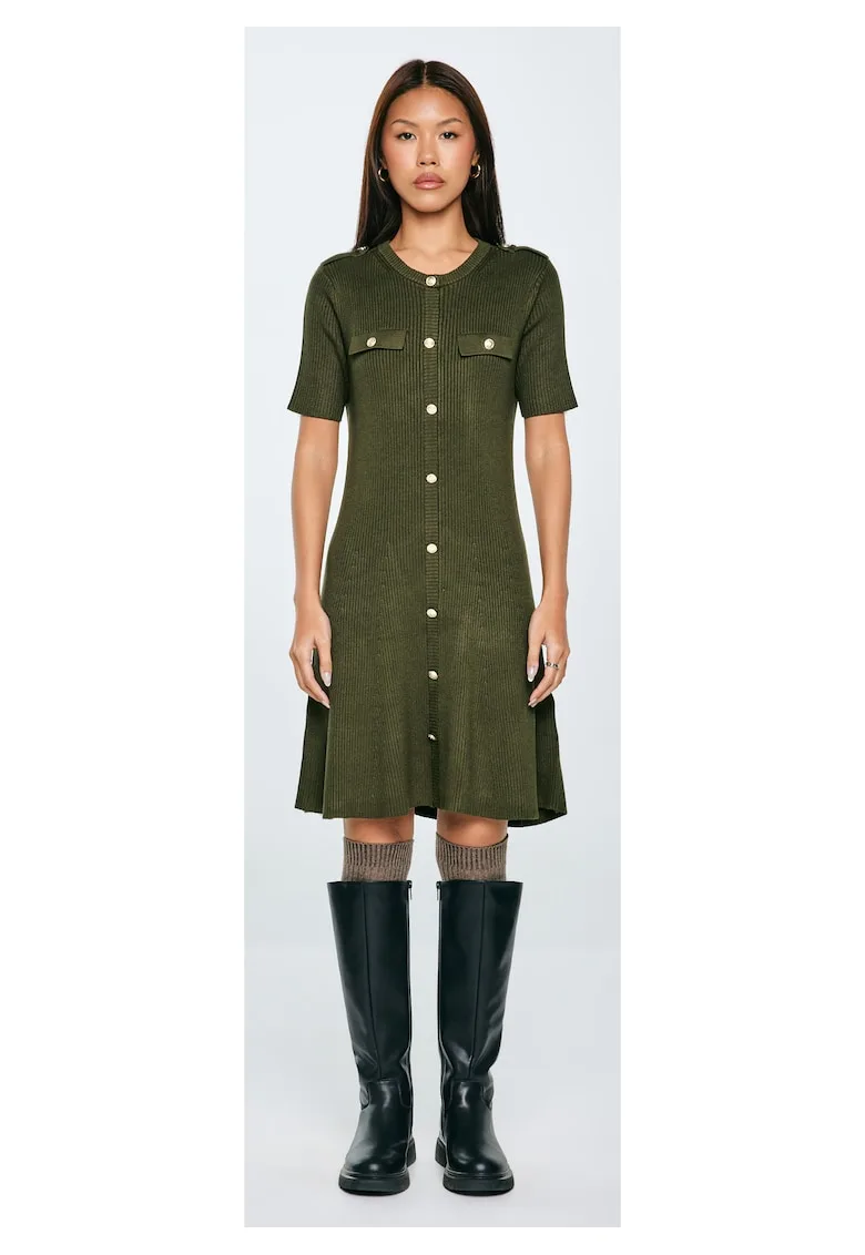 Rochie midi cu nasturi decorativi Dilara
