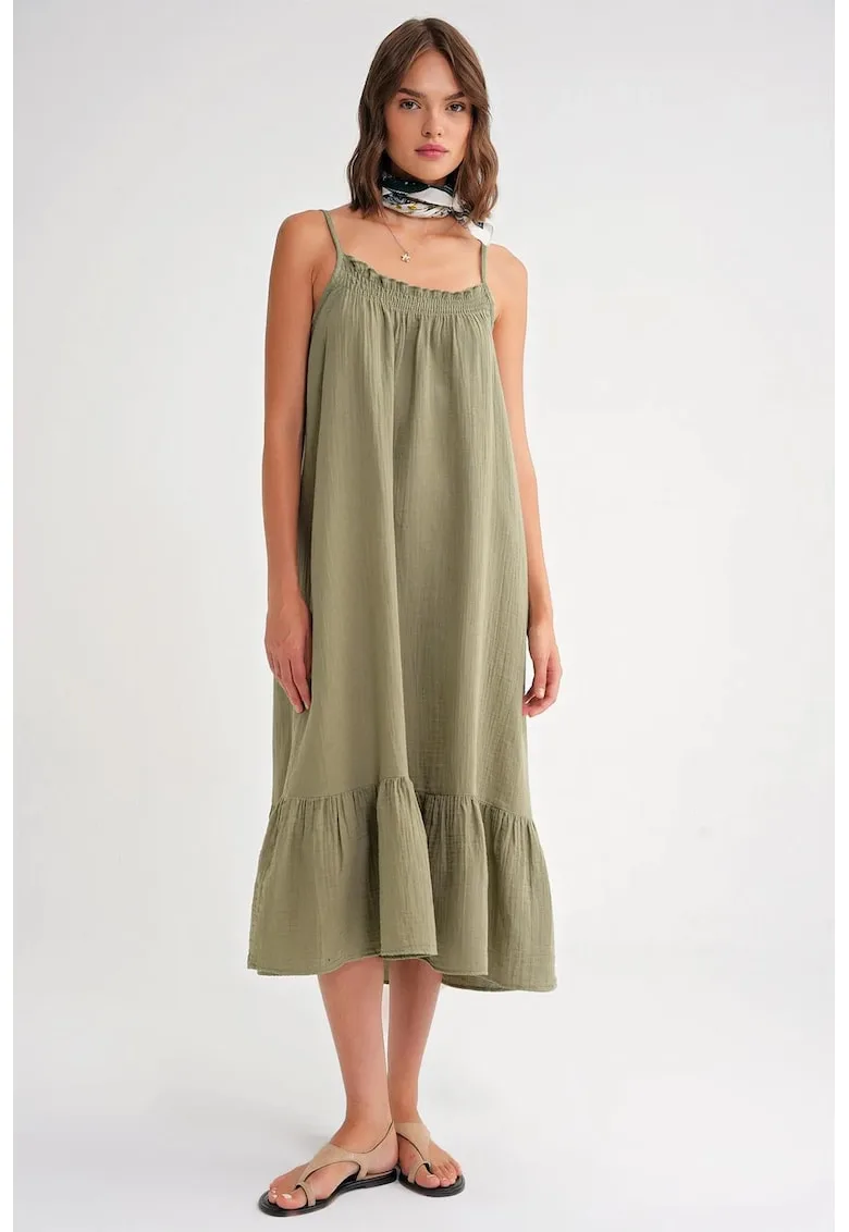 Rochie Midi cu volane – verde salvie – textil – Reduceri Exclusive