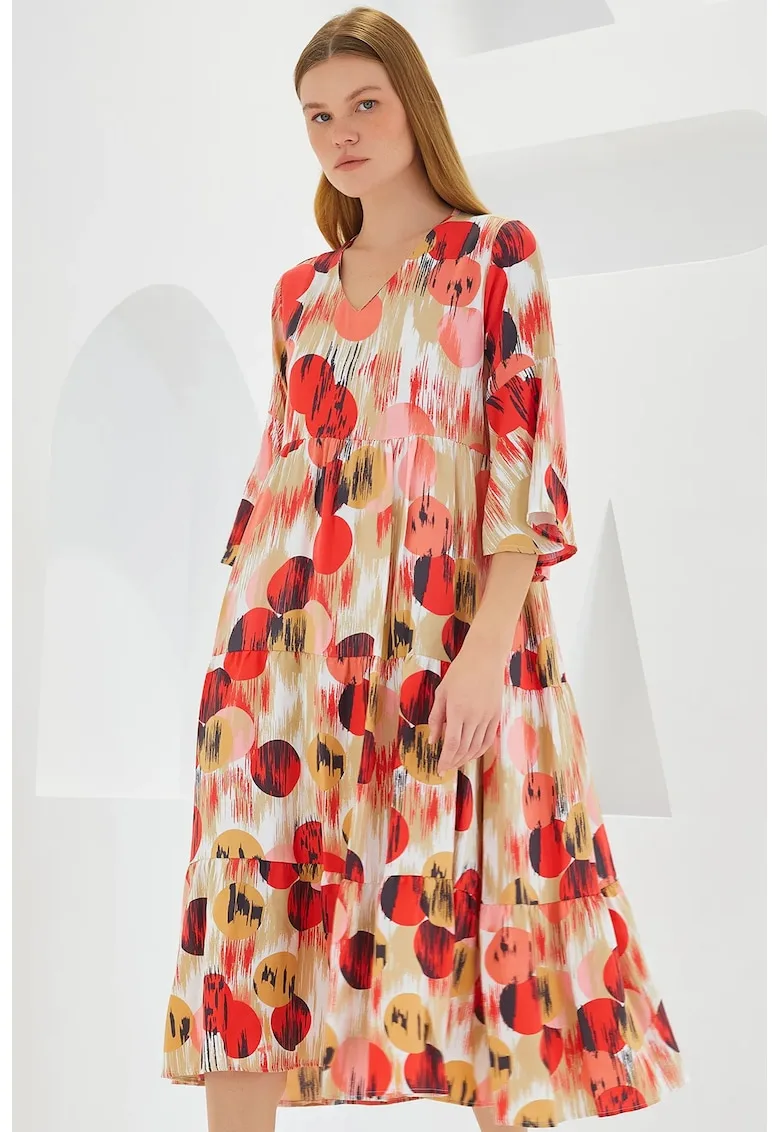 Rochie midi dama HiCCUP – decolteu V – viscoza – multicolor – Reduceri Exclusive
