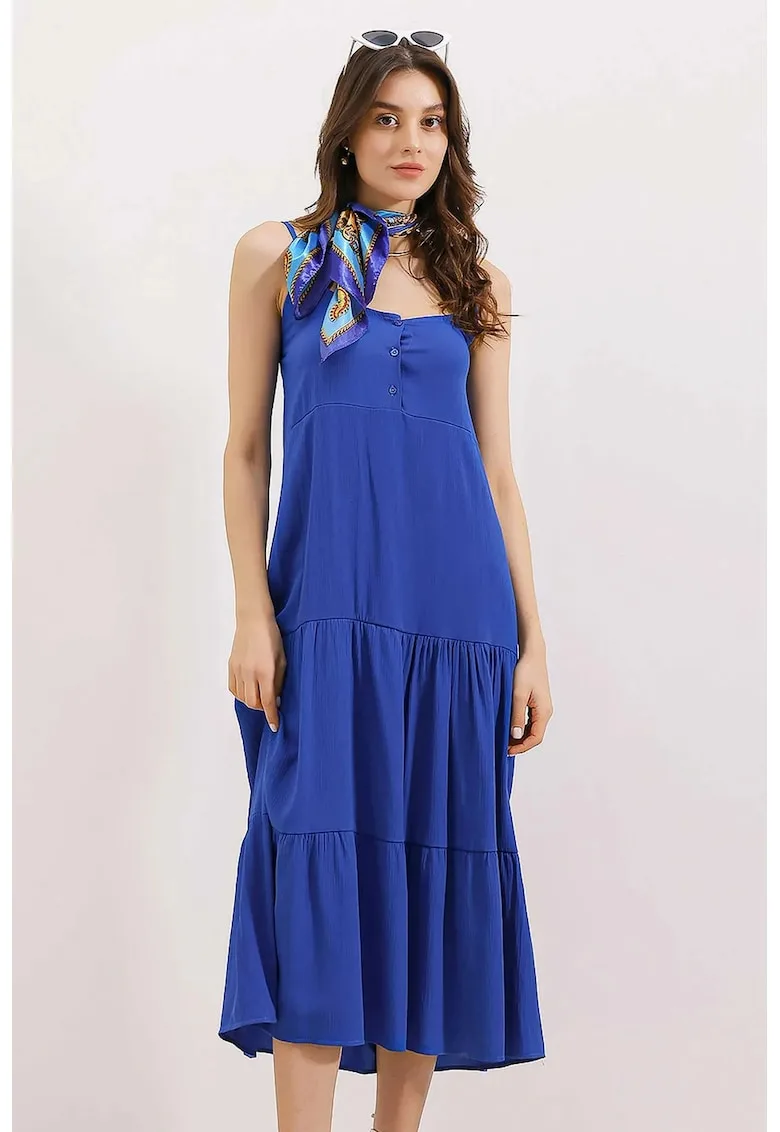 Rochie midi dama – HiCCUP – lejera – decolteu patrat – poliester – albastru