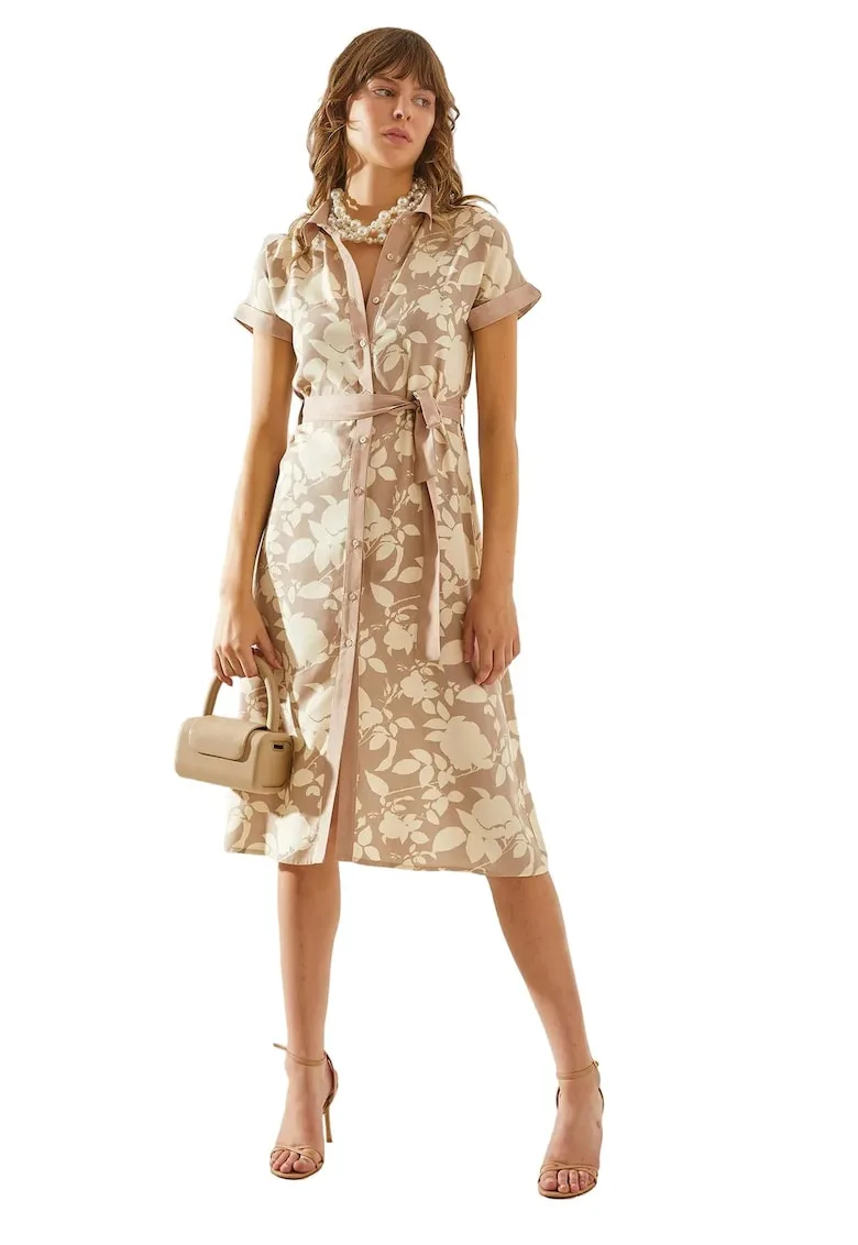Rochie midi dama – imprimeu floral – bumbac/poliester – maro/alb – Reduceri Exclusive