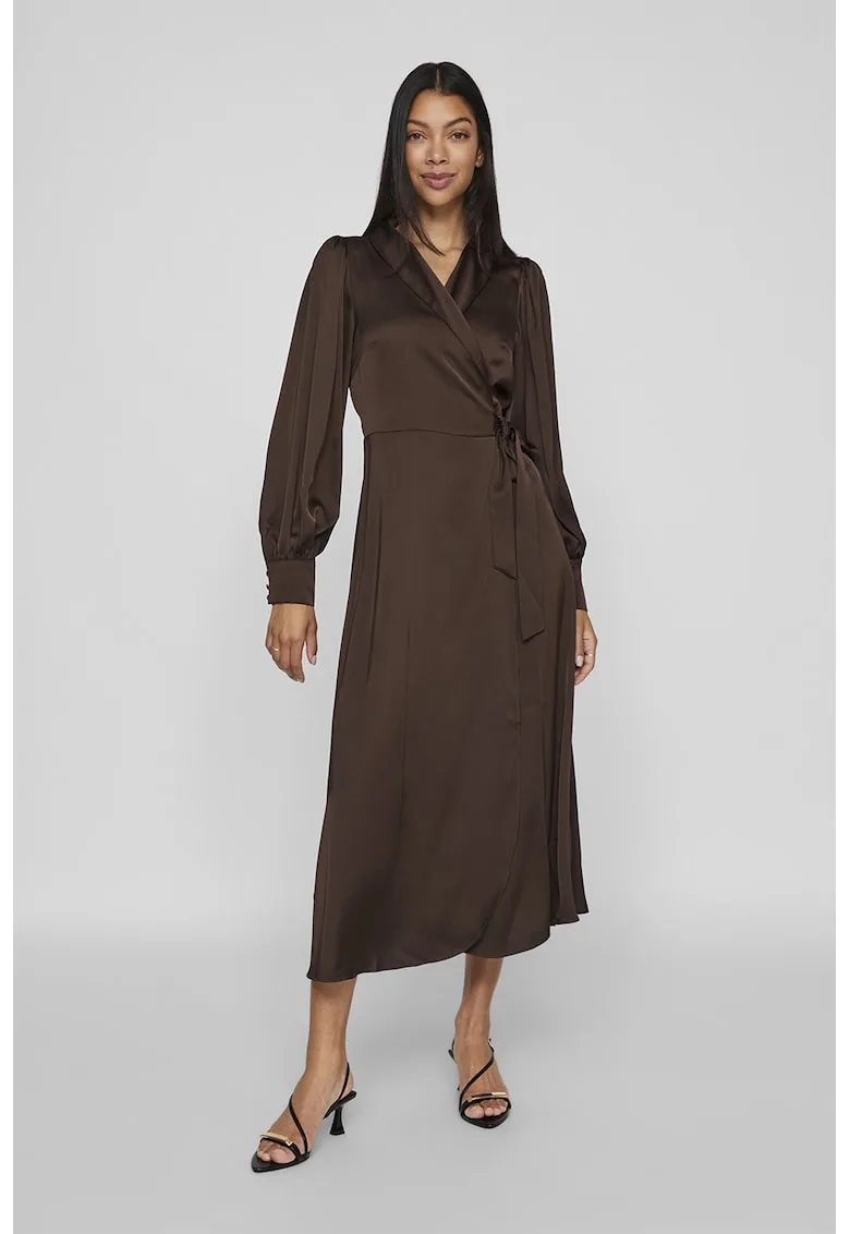 Rochie midi de satin cu model petrecut – Reduceri Exclusive