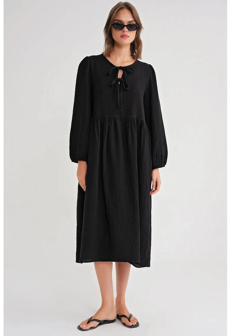 Rochie Midi decolteu in V – negru – textil – Reduceri Exclusive