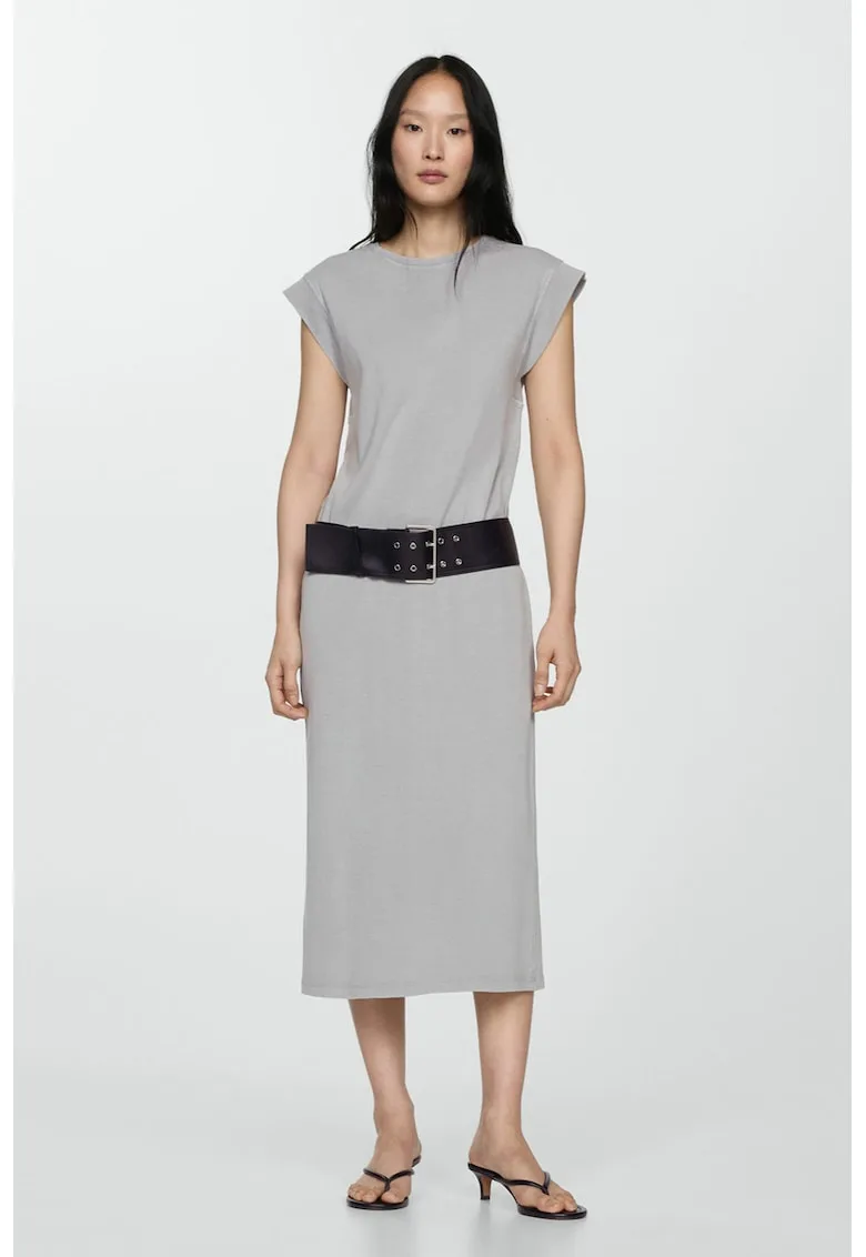 Caracteristici Culoare: gri cenusiu Stil: casual Material: bumbac Imprimeu: uni Croiala: dreapta Lungime: midi Decolteu: la baza gatului Lungime maneca: maneca scurta Sistem inchidere: fara inchidere Compozitie Exterior: 100% bumbac.