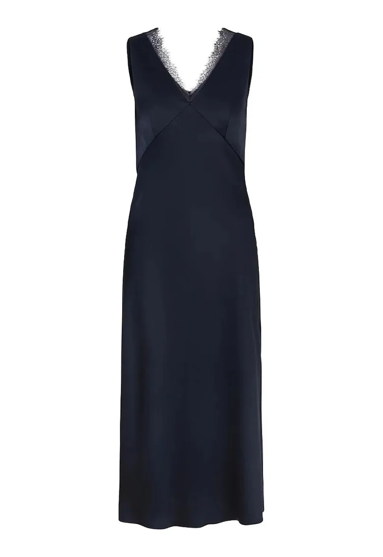 Rochie midi fara maneci cu decolteu in V si detalii tip dantela
