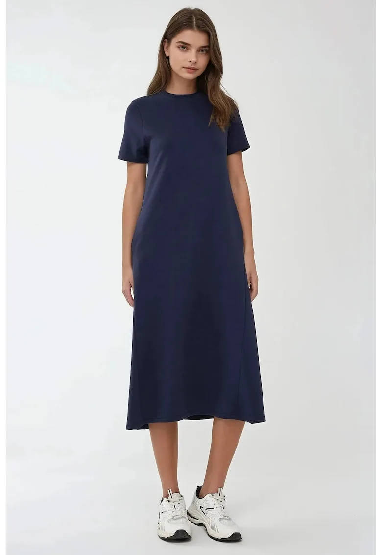 Descoperă rochia perfectă pentru evenimente speciale! Cumpără Rochie midi guler rotund – maneca scurta – bleumarin – jerseu acum de la FashionDays și profită de oferta limitată!