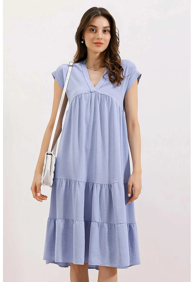 Rochie Midi HiCCUP cu volane si decolteu in V – Albastru – Textil – Reduceri Exclusive
