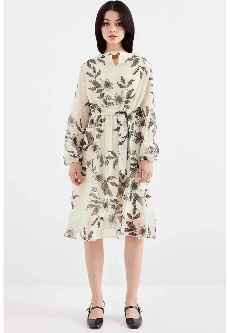 Rochie midi – HiCCUP – imprimeu floral – bej – poliester