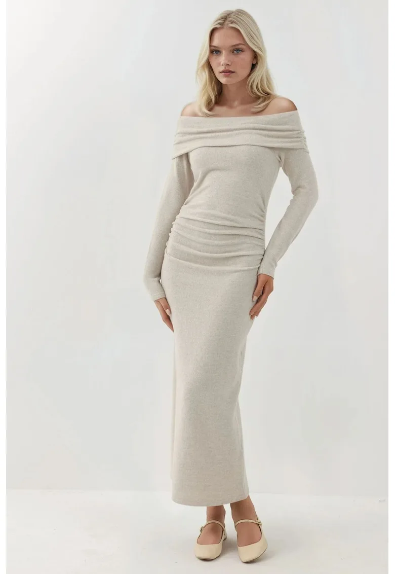 Rochie midi – Jerseu – Crem – Reduceri Exclusive