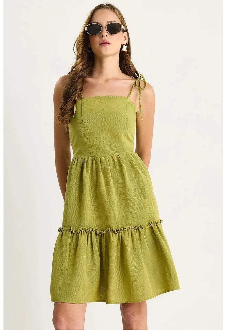 Descoperă rochia perfectă pentru evenimente speciale! Cumpără Rochie midi LUCCI – decolteu patrat – verde – textil acum de la FashionDays și profită de oferta limitată!