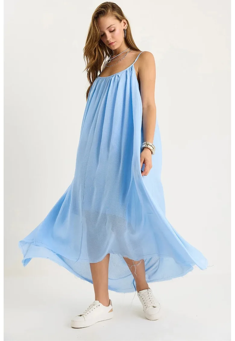 Descoperă rochia perfectă pentru evenimente speciale! Cumpără Rochie midi – LUCCI – guler rotund – albastru – bumbac acum de la FashionDays și profită de oferta limitată!