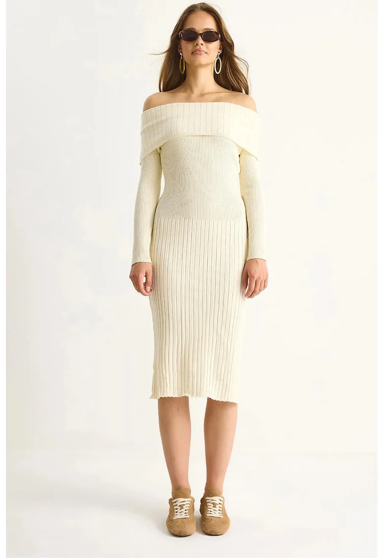 Rochie Midi – nervuri – tricot – Fildes Natural –