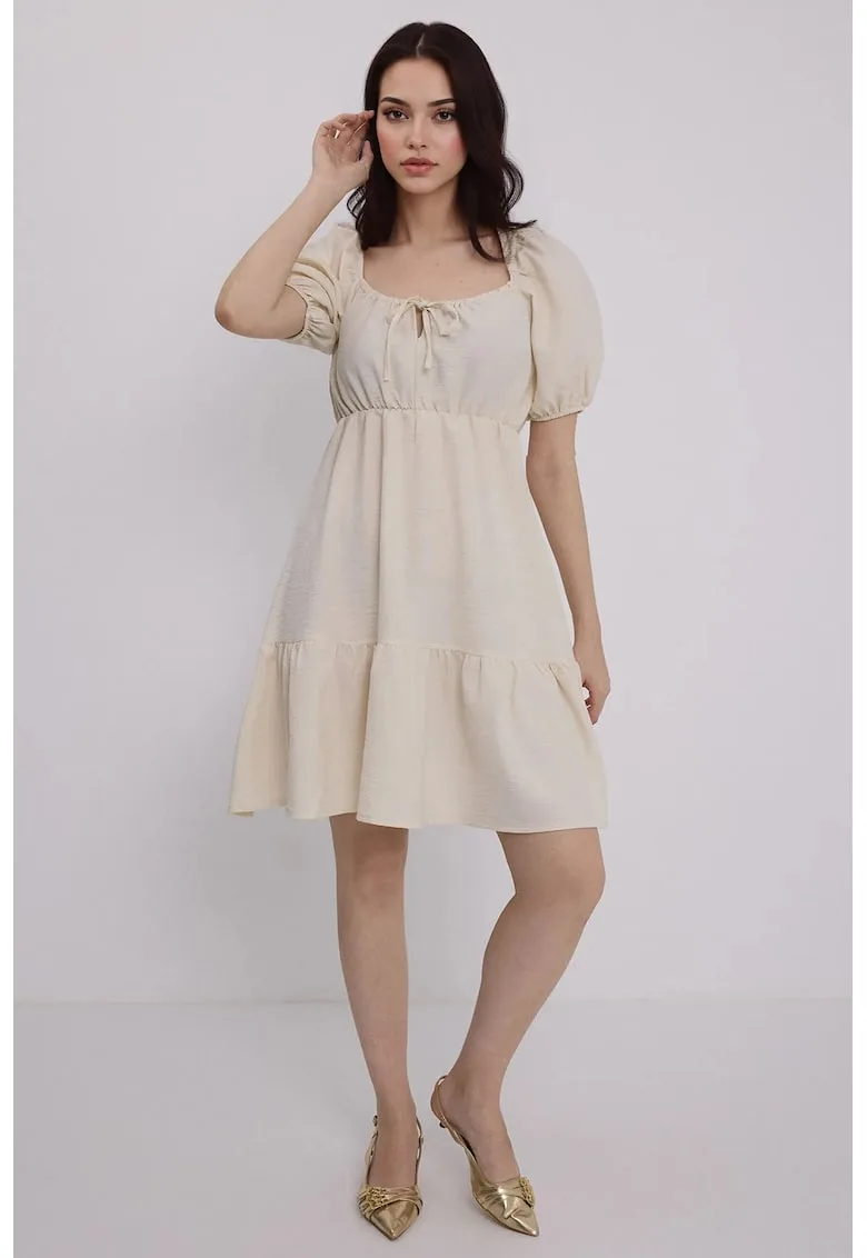 Rochie mini dama – decolteu patrat – bumbac/poliester – bej – Reduceri Exclusive
