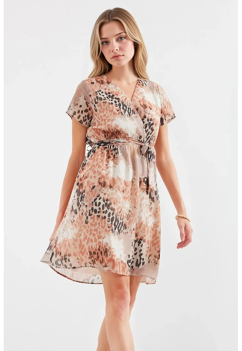 Rochie mini dama – imprimeu floral – decolteu in V – textil – multicolor – Reduceri Exclusive