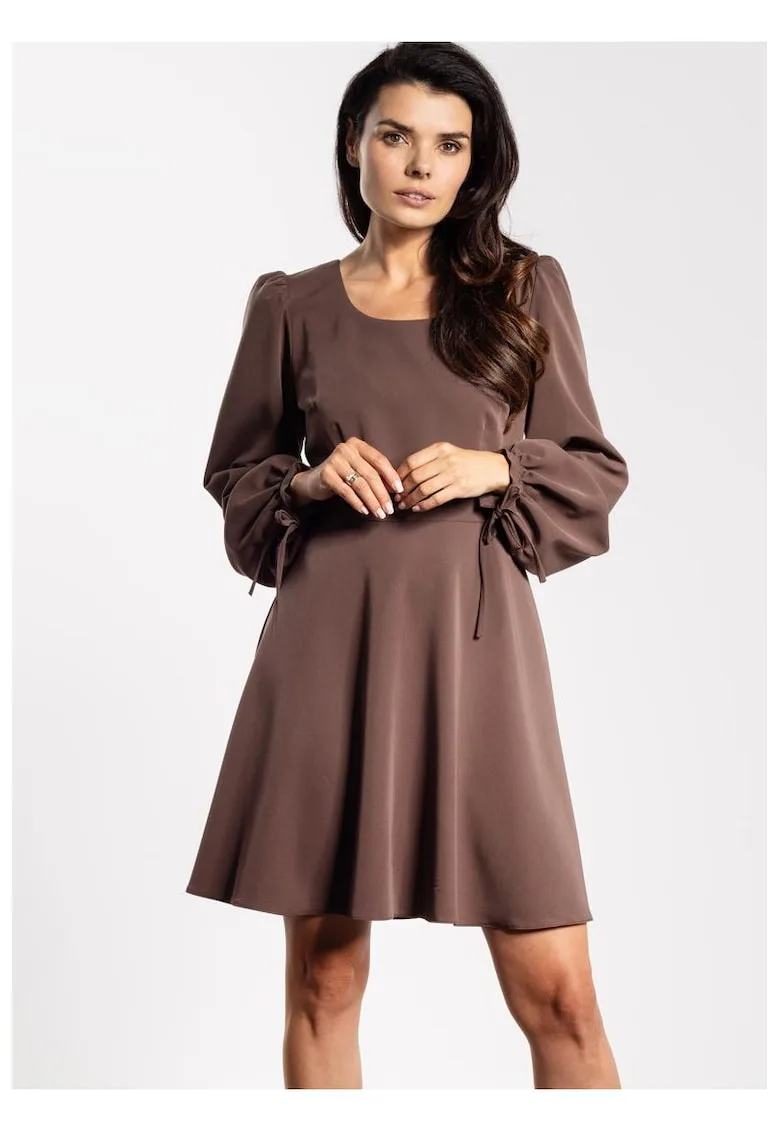 Caracteristici Culoare: bronz Stil: elegant Material: poliester Imprimeu: uni Croiala: evazat Lungime: scurta Decolteu: rotund Lungime maneca: maneca lunga Sistem inchidere: fermoar.