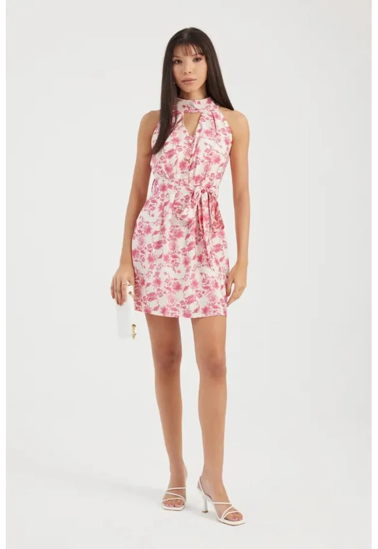 Rochie mini – imprimeu floral – decupata – roz – textil – Reduceri Exclusive