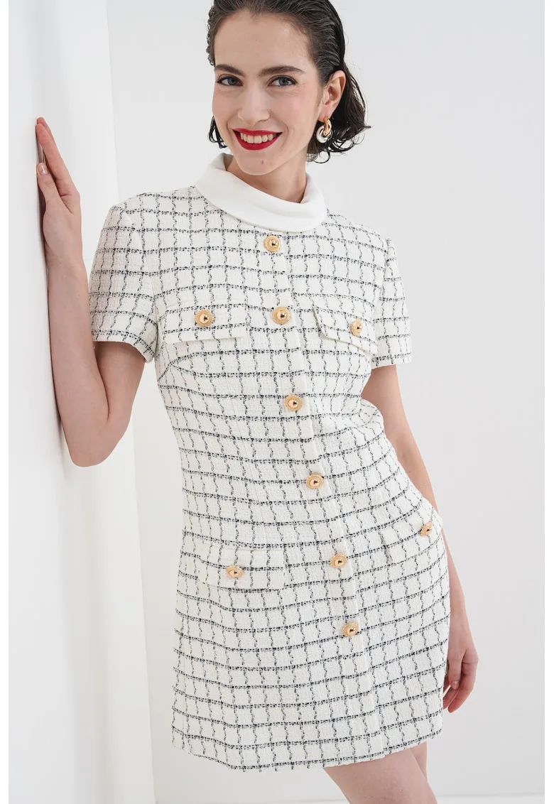 Descoperă rochia perfectă pentru evenimente speciale! Cumpără Rochie mini in carouri din amestec de lana cu nasturi decorativi acum de la FashionDays și profită de oferta limitată!