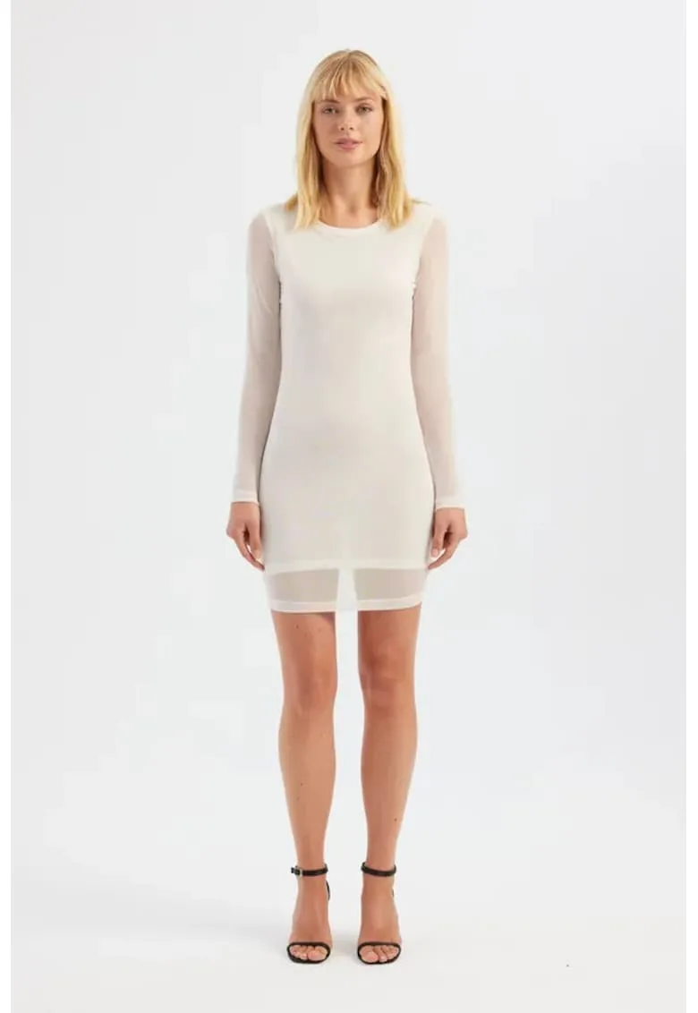 Rochie mini – maneca lunga – decolteu rotund – alb – plasa