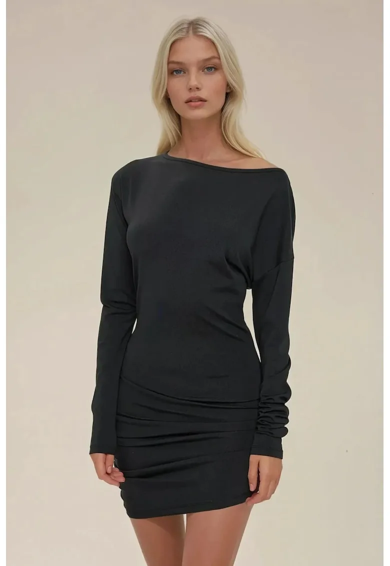 Rochie mini mulata – decolteu tip barca – negru – jerseu