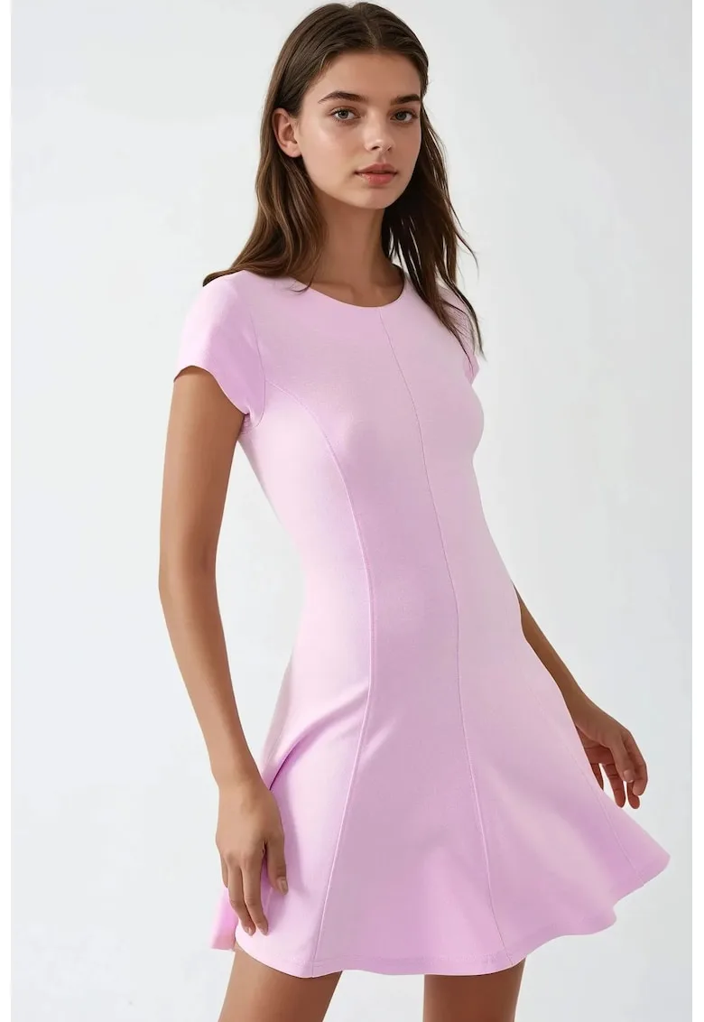 Rochie mini – roz – jerseu – Reduceri Exclusive