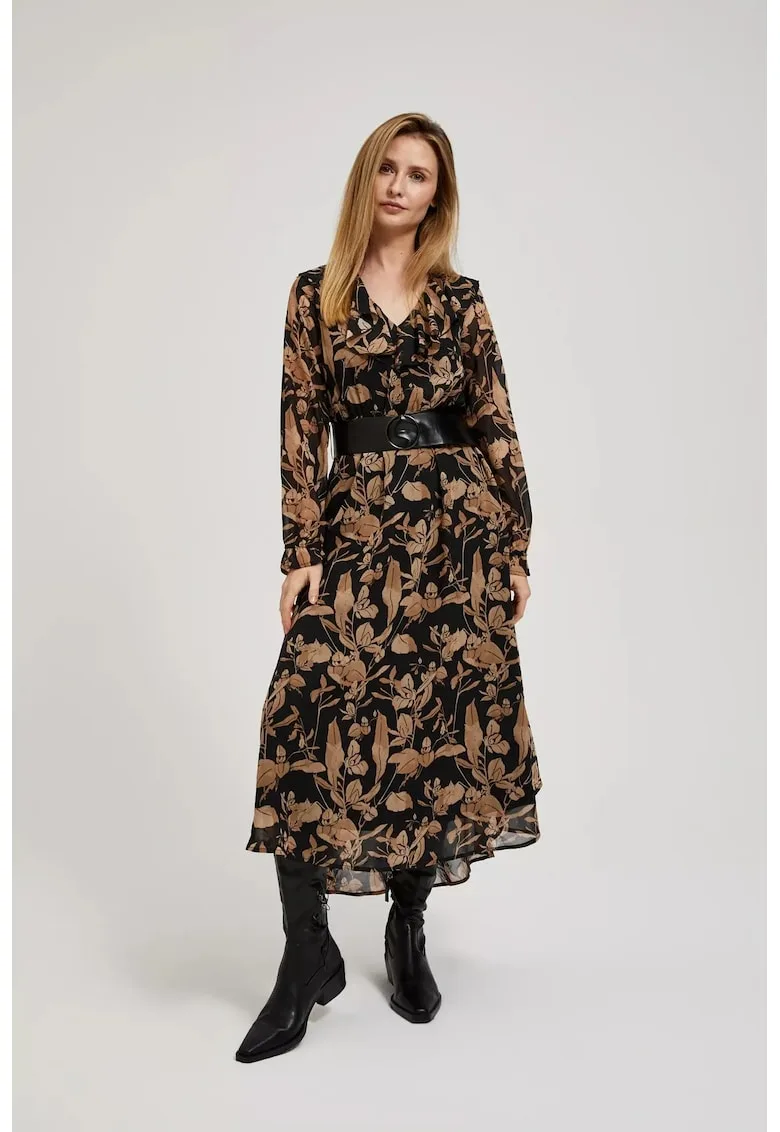 Rochie neagra cu fusta evazata si imprimeu floral