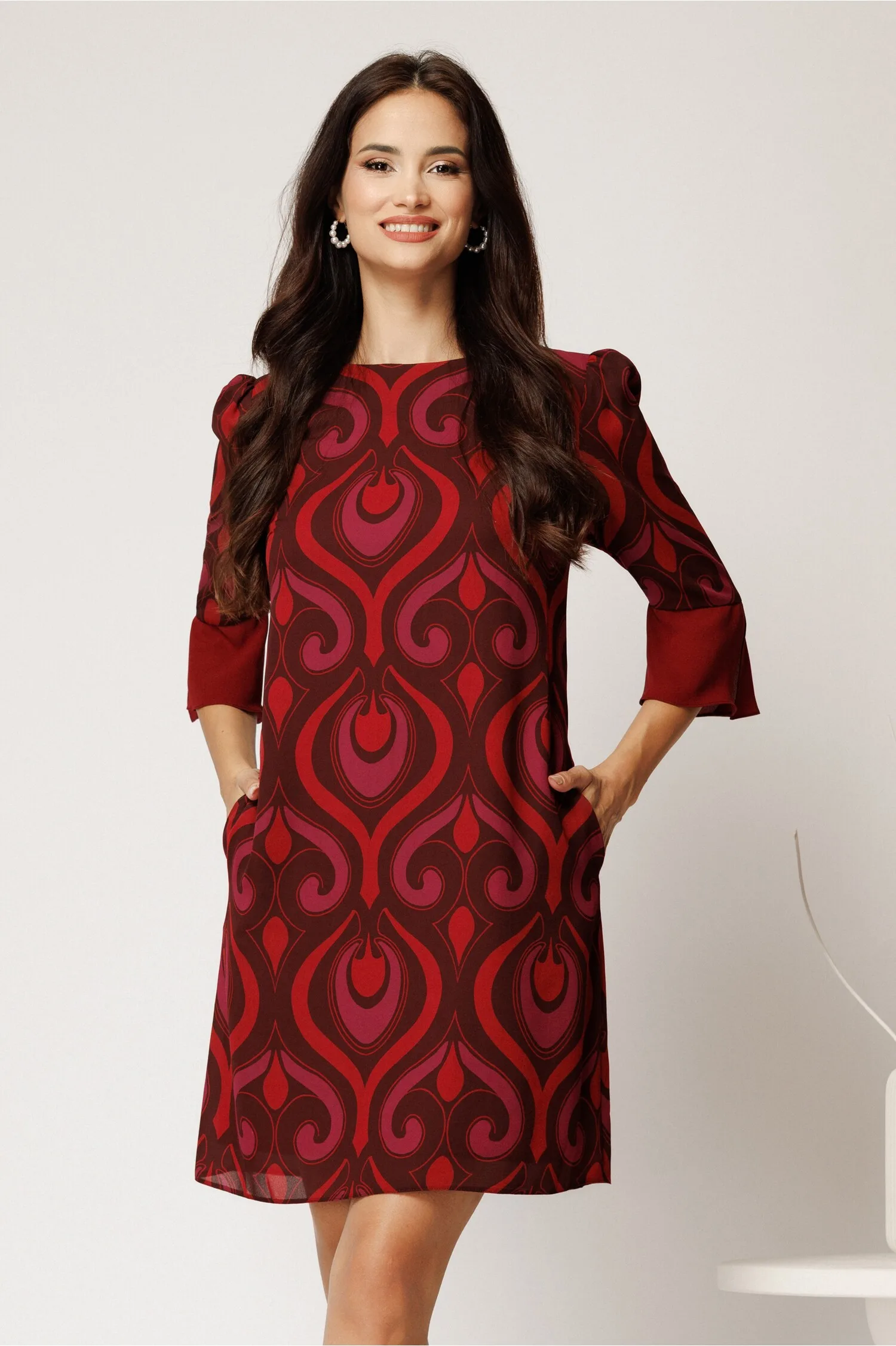 Rochie scurta bordo din voal cu imprimeu si croi cambrat – Reduceri Exclusive