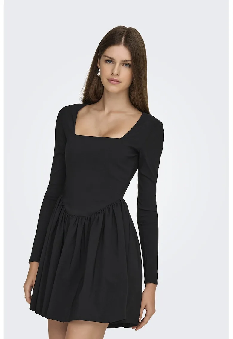 Descoperă rochia perfectă pentru evenimente speciale! Cumpără Rochie scurta cu decolteu patrat si terminatie cu pliuri acum de la FashionDays și profită de oferta limitată!