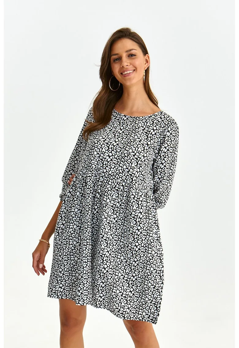Caracteristici Culoare: alb – negru Stil: casual Material: viscoza Imprimeu: animal print Croiala: lejer Lungime: scurta Decolteu: rotund Lungime maneca: maneca trei sferturi Compozitie Exterior: 100% viscoza.