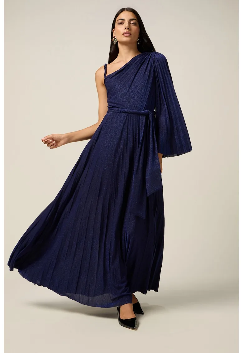 Rochie stralucitoare cu decolteu pe un umar si cordon in talie – Reduceri Exclusive