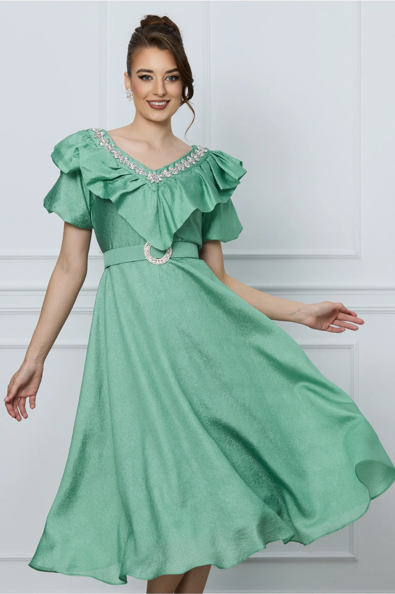 Descoperă rochia perfectă pentru evenimente speciale! Cumpără Rochie Suzzie verde cu strasuri si curea in talie acum de la DyFashion și profită de oferta limitată!
