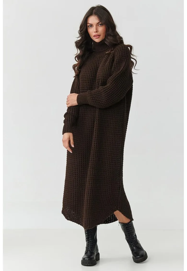 Caracteristici Culoare: maro Stil: casual Material: acril Imprimeu: uni Croiala: lejer Lungime: lunga Guler: rasucit Maneci: raglan Lungime maneca: maneca lunga Talie: regular.