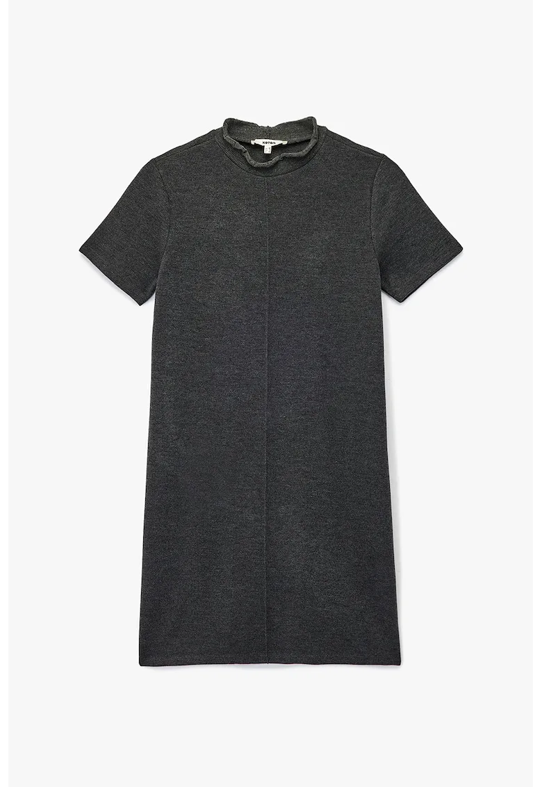 Caracteristici Culoare: gri antracit Stil: casual Material: poliester – bumbac Imprimeu: uni Croiala: dreapta Lungime: scurta Decolteu: decolteu la baza gatului Lungime maneca: maneca scurta Sistem inchidere: fara inchidere Compozitie Exterior: 51% bumbac – 49% poliester.