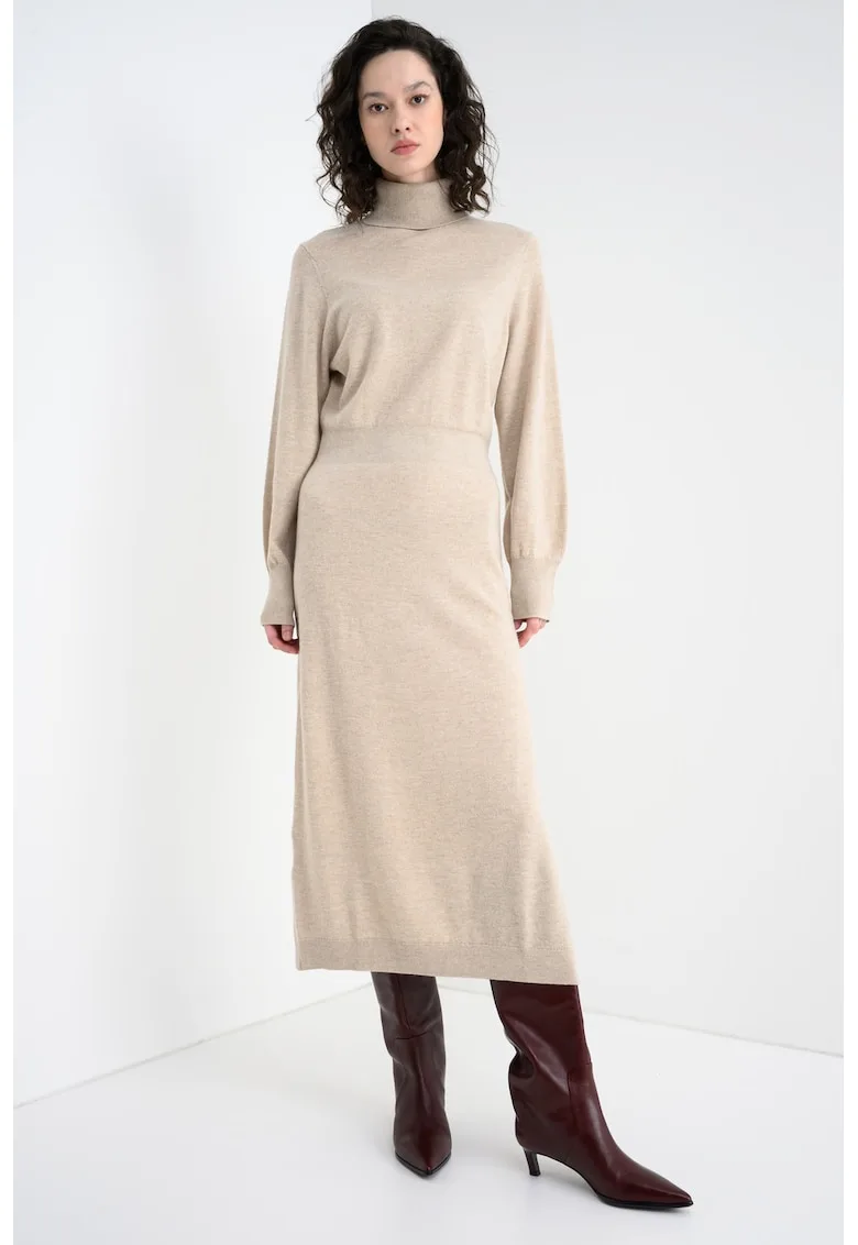 Rochie tricotata fin de lana cu guler inalt si slit lateral – Reduceri Exclusive
