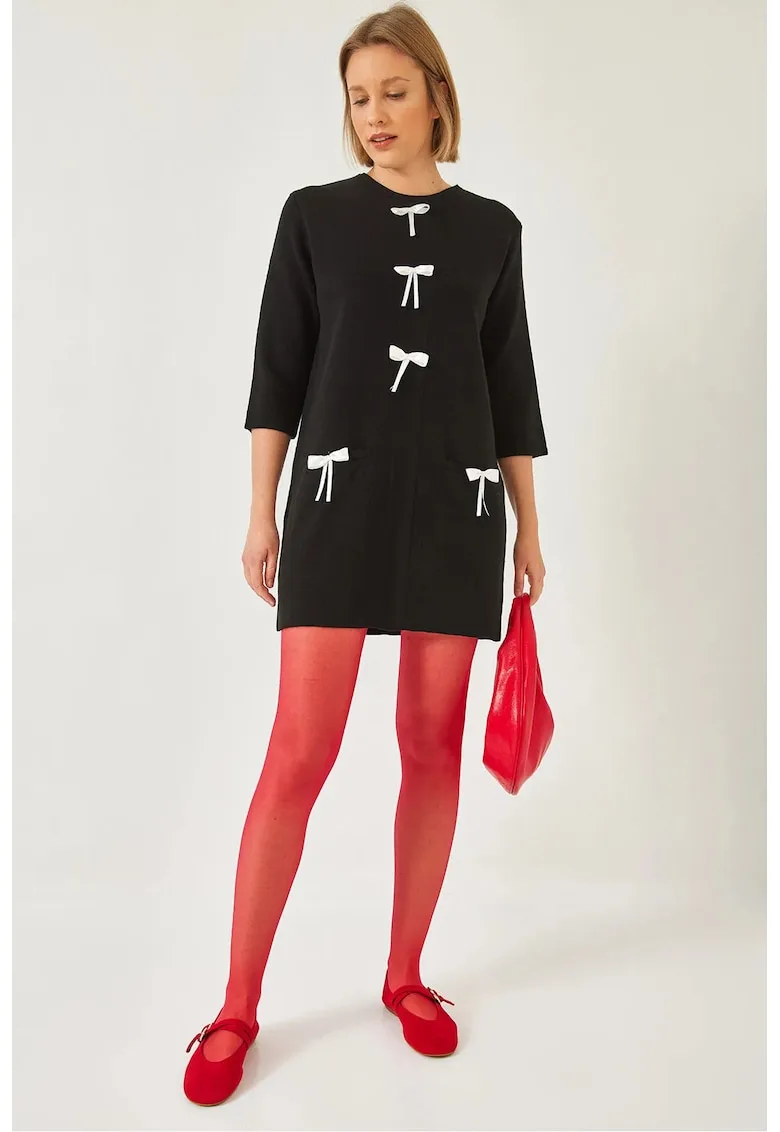 Rochie tricotata – texturata cu funda – neagra – tricot – – Reduceri Exclusive